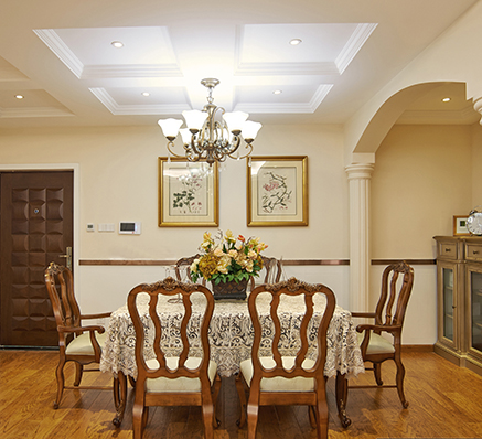 是以中國傳統(tǒng)文化作為背景,在色彩搭配上以黑、紅、為主,室內(nèi)多采用對稱式的布局方式,格調(diào)高雅,造型簡樸優(yōu)美,色彩濃重而成熟。